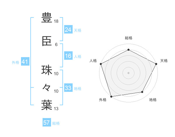 豊臣 珠々葉さんの総格は57画の4点!