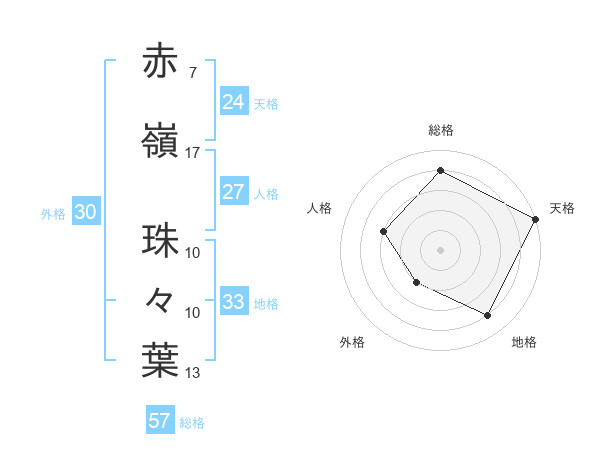 赤嶺 珠々葉さんの総格は57画の4点!