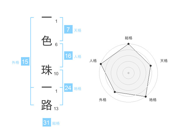 一色 珠一路さんを姓名の画数から五運を鑑定