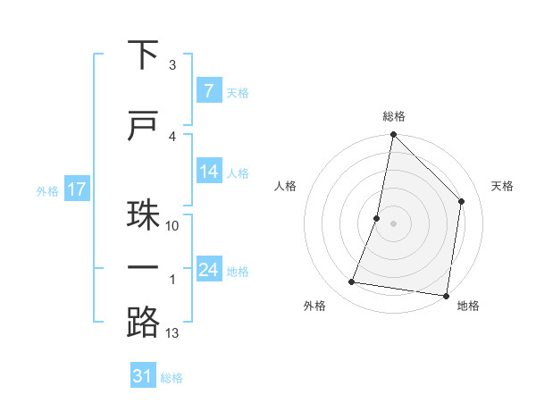 下戸 珠一路さんを姓名の画数から五運を鑑定