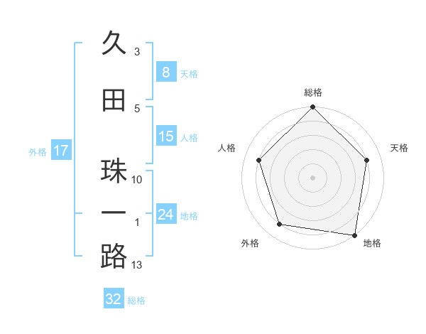 久田 珠一路さんを姓名の画数から五運を鑑定