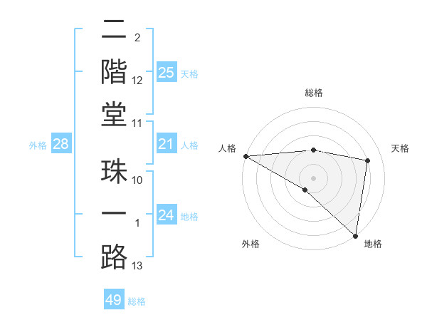 二階堂 珠一路さんを姓名の画数から五運を鑑定