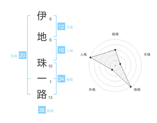 伊地 珠一路さんを姓名の画数から五運を鑑定