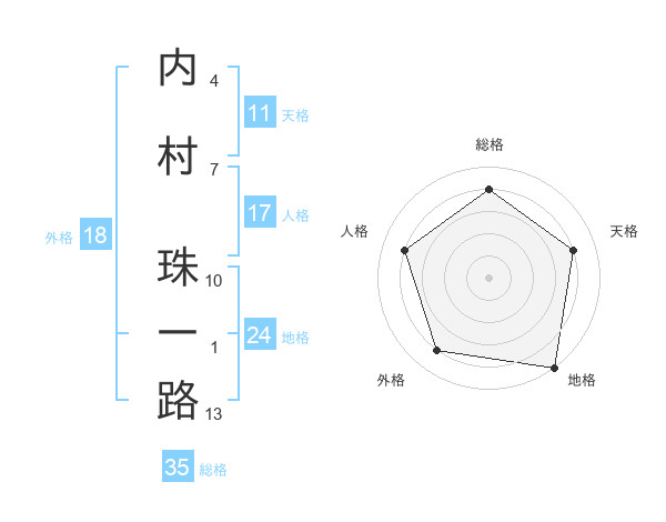 内村 珠一路さんを姓名の画数から五運を鑑定