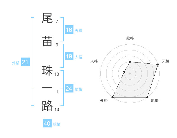 尾苗 珠一路さんを姓名の画数から五運を鑑定