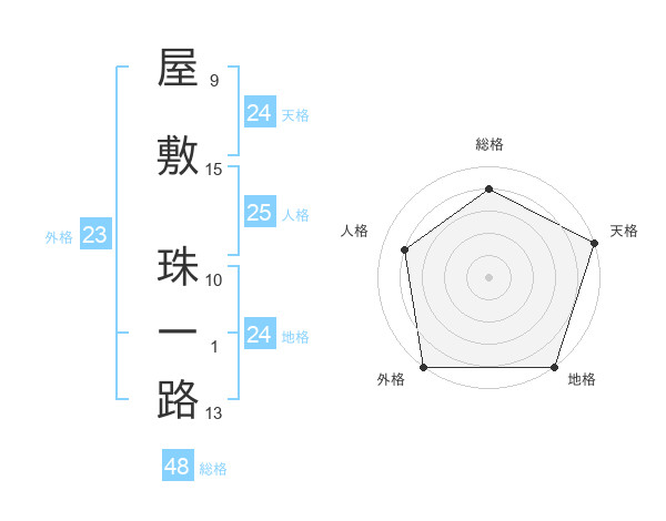 屋敷 珠一路さんを姓名の画数から五運を鑑定