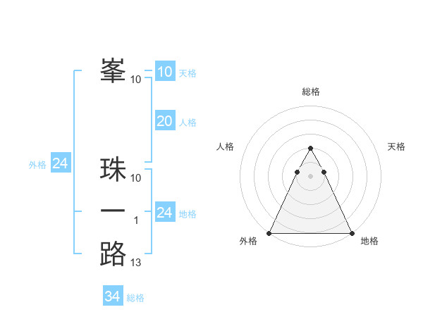 峯 珠一路さんを姓名の画数から五運を鑑定