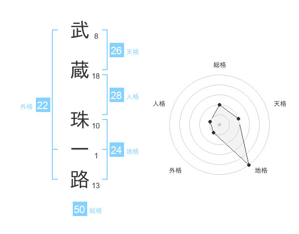 武蔵 珠一路さんの総格は50画の2点!