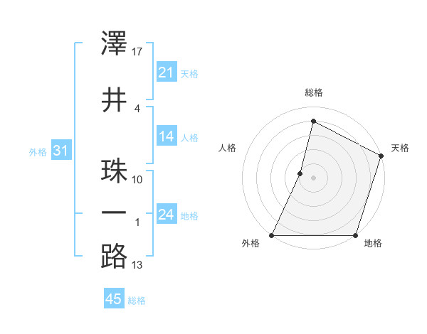 澤井 珠一路さんを姓名の画数から五運を鑑定