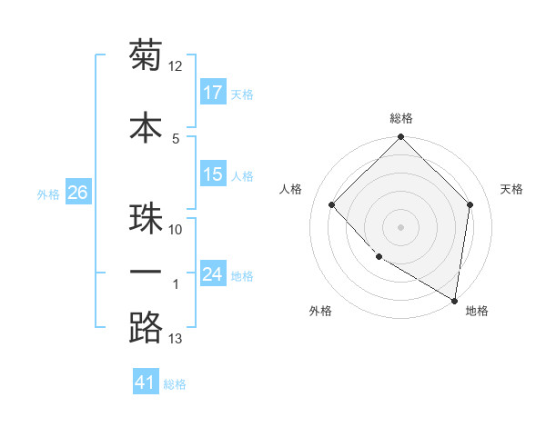 菊本 珠一路さんを姓名の画数から五運を鑑定