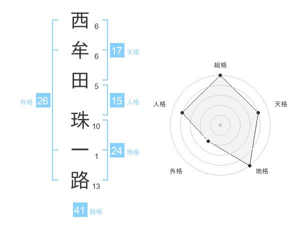 西牟田 珠一路さんを姓名の画数から五運を鑑定