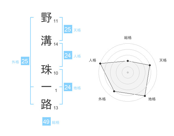 野溝 珠一路さんを姓名の画数から五運を鑑定