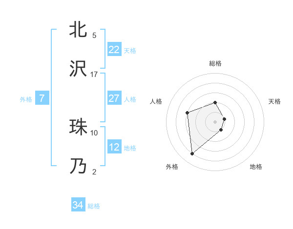 北沢 珠乃さんを姓名の画数から五運を鑑定