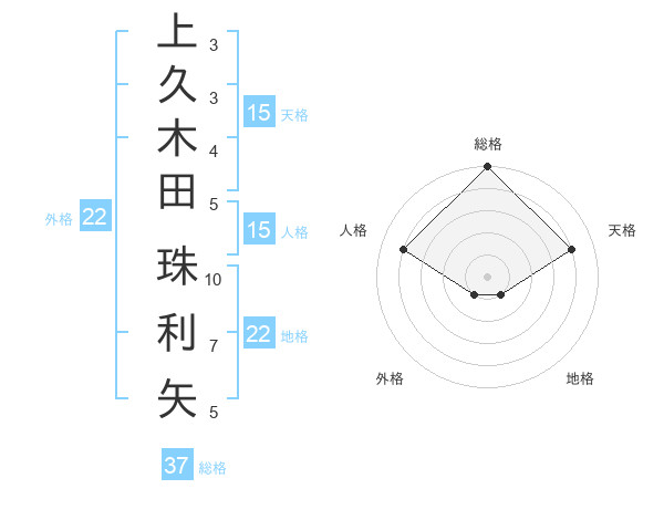 上久木田 珠利矢さんを姓名の画数から五運を鑑定