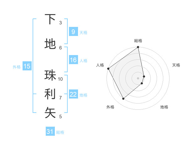 下地 珠利矢さんを姓名の画数から五運を鑑定