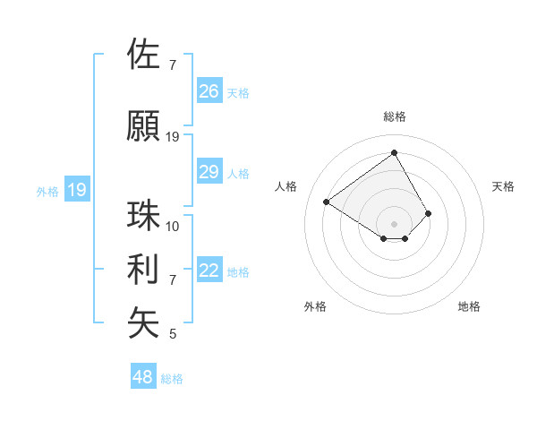 佐願 珠利矢さんを姓名の画数から五運を鑑定