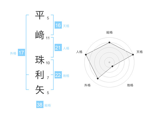 平﨑 珠利矢さんの総格は38画の4点!