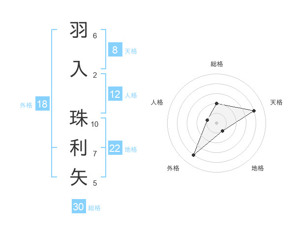 羽入 珠利矢さんを姓名の画数から五運を鑑定