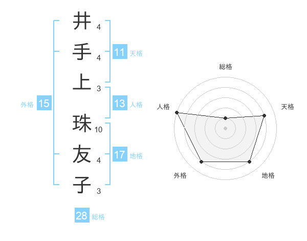 井手上 珠友子さんを姓名の画数から五運を鑑定