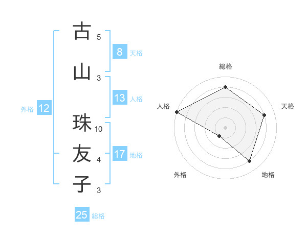 古山 珠友子さんを姓名の画数から五運を鑑定