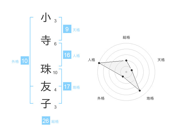 小寺 珠友子さんを姓名の画数から五運を鑑定