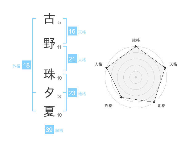 古野 珠夕夏さんを姓名の画数から五運を鑑定
