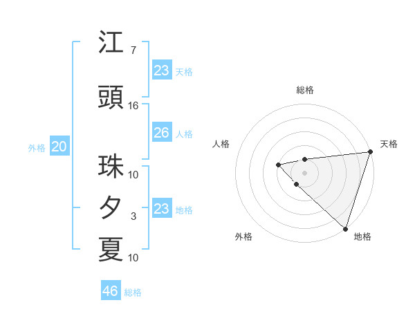 江頭 珠夕夏さんを姓名の画数から五運を鑑定