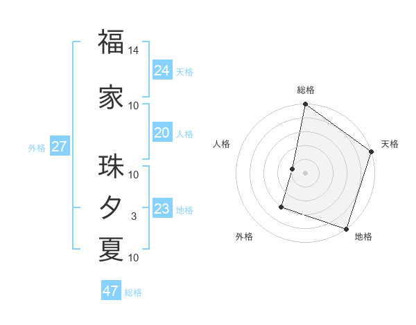 福家 珠夕夏さんを姓名の画数から五運を鑑定