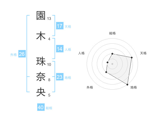 園木 珠奈央さんを姓名の画数から五運を鑑定