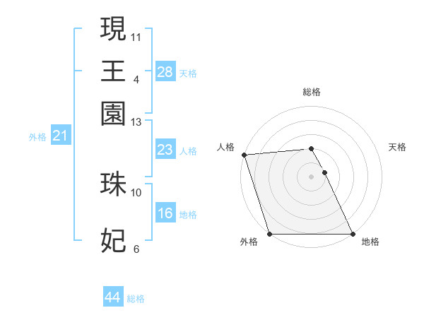 現王園 珠妃さんの外格は21画の5点!