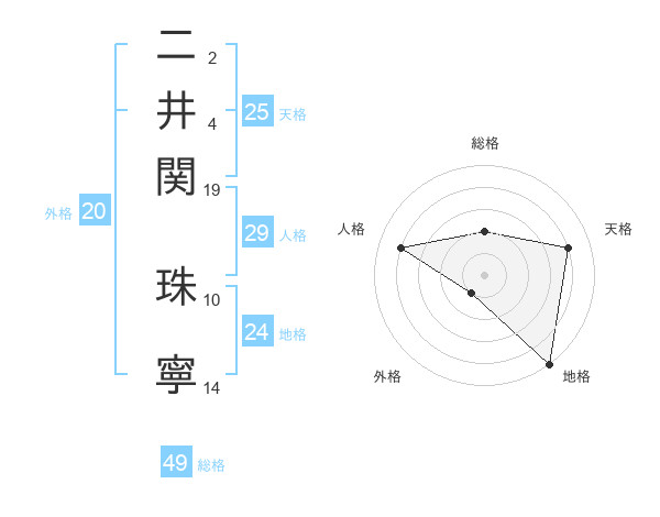 二井関 珠寧さんの総格は49画の2点!