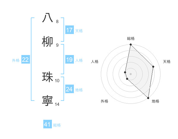 八柳 珠寧さんの総格は41画の5点!