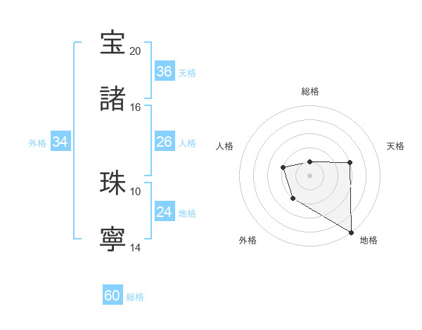 宝諸 珠寧さんを姓名の画数から五運を鑑定