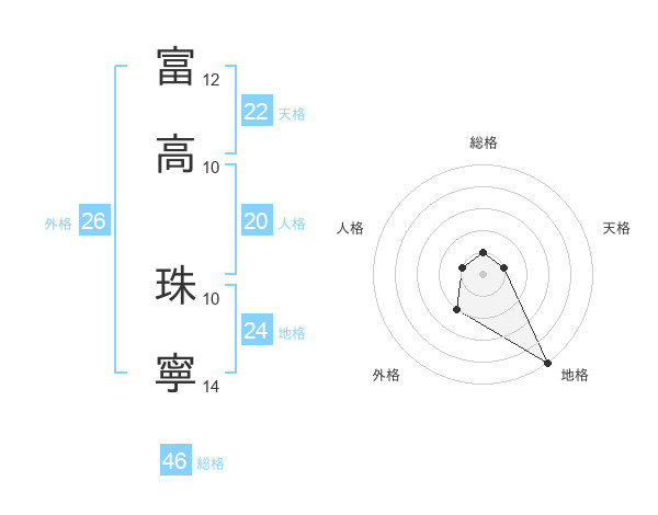 富高 珠寧さんを姓名の画数から五運を鑑定