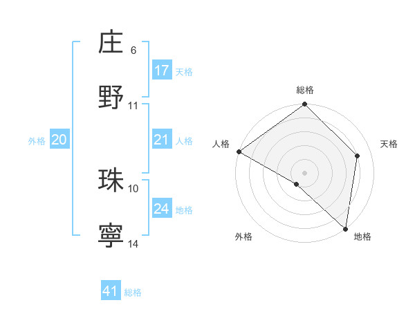庄野 珠寧さんの外格は20画の1点!