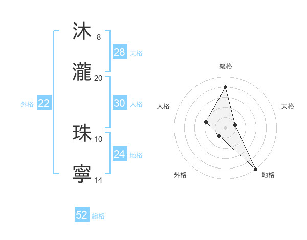 沐瀧 珠寧さんの総格は52画の4点!