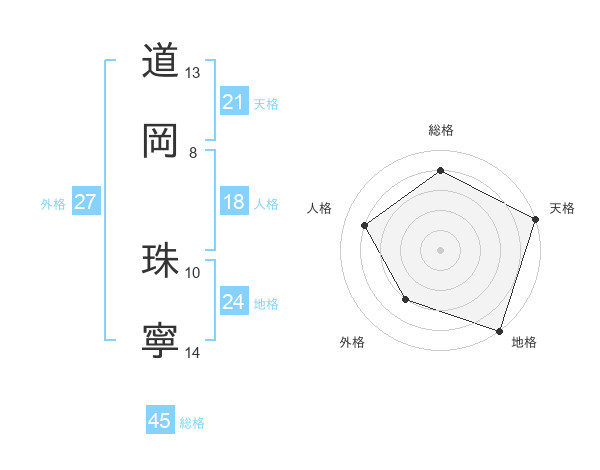 道岡 珠寧さんを姓名の画数から五運を鑑定