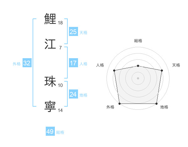鯉江 珠寧さんを姓名の画数から五運を鑑定
