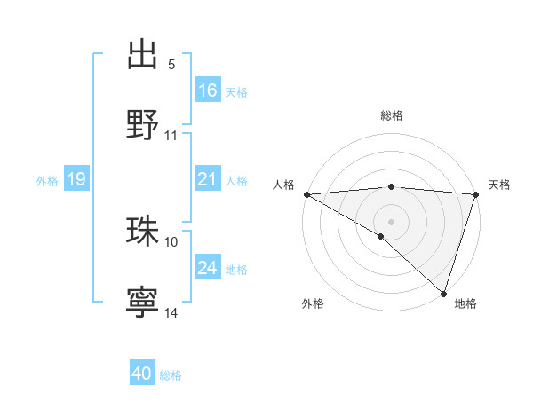 出野 珠寧さんの総格は40画の2点!