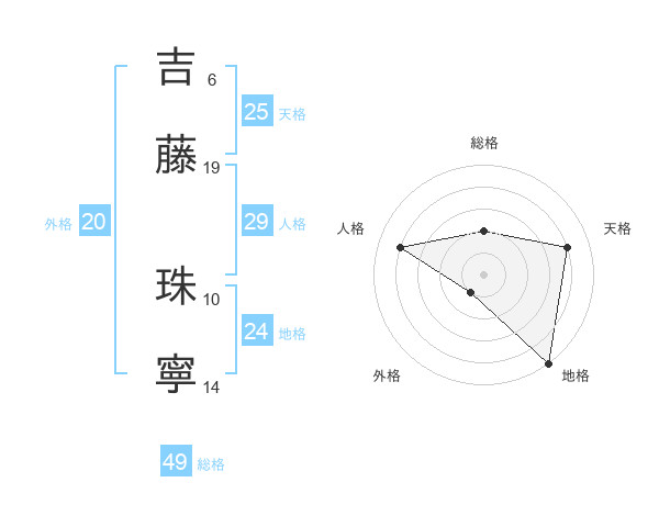 吉藤 珠寧さんを姓名の画数から五運を鑑定