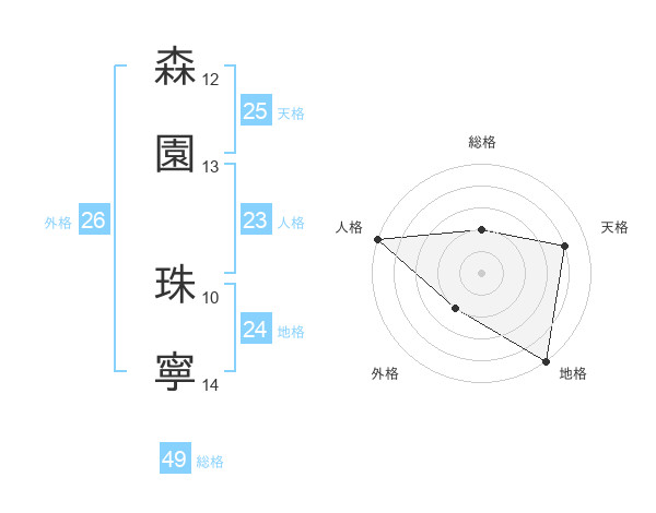 森園 珠寧さんの人格は23画の5点!