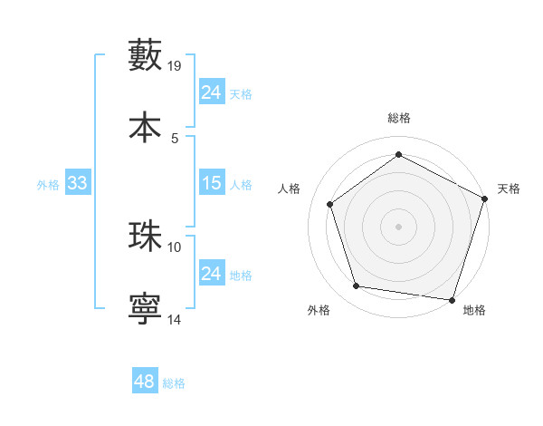 藪本 珠寧さんを姓名の画数から五運を鑑定