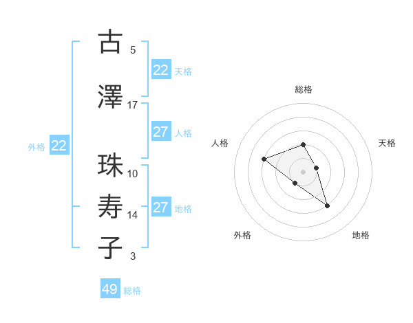 古澤 珠寿子さんを姓名の画数から五運を鑑定