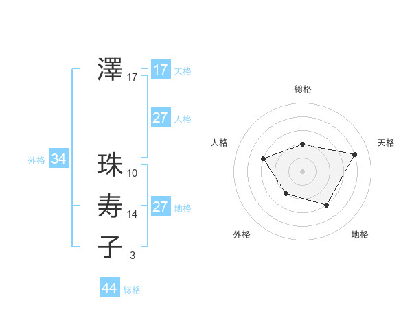 澤 珠寿子さんの天格は17画の4点!