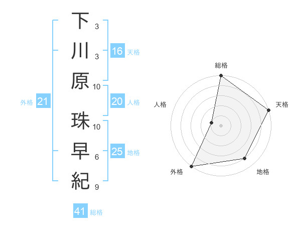 下川原 珠早紀さんを姓名の画数から五運を鑑定