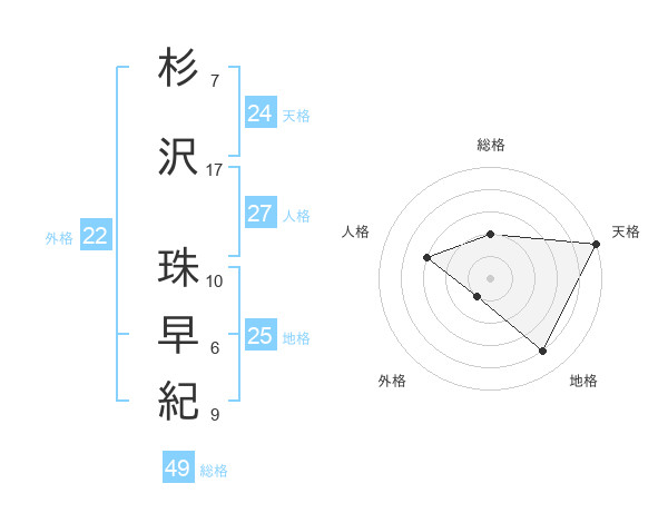 杉沢 珠早紀さんを姓名の画数から五運を鑑定