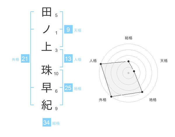 田ノ上 珠早紀さんを姓名の画数から五運を鑑定