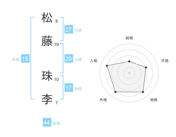 松藤 珠李さんの総格は44画の2点!