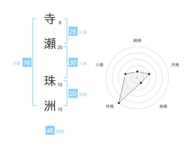 寺瀬 珠洲さんの地格は20画の1点!