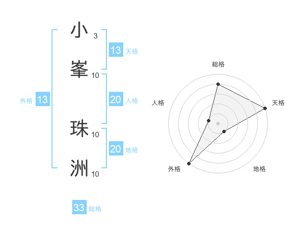 小峯 珠洲さんの総格は33画の4点!